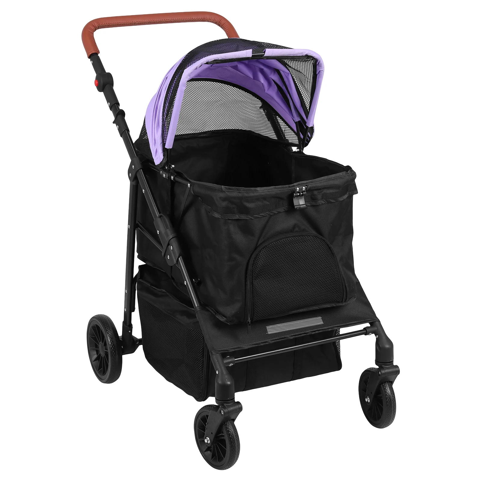 - Safe, visible design includes reflective strips for night walks and rear-wheel brakes that keep the cart securely parked.